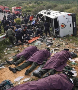 وقعت صباح يومه السبت 21 فبراير 2026 حادثة سير تلقائية لحافلة كانت تقل 44 عنصرا من الفرقة المتنقلة لحفظ النظام بمدينة سيدي إفني كانوا في مهمة، حيث انقلبت الحافلة على مستوى قنطرة “واد سيدي الوافي” أو “واد أدبوشني”، لما فقد السائق السيطرة عليها في منحدر طرقي وعر بسبب المنعرجات الخطرة .. وذلك، على بعد نحو 24 كيلومترا من المدينة باتجاه تيزنيت